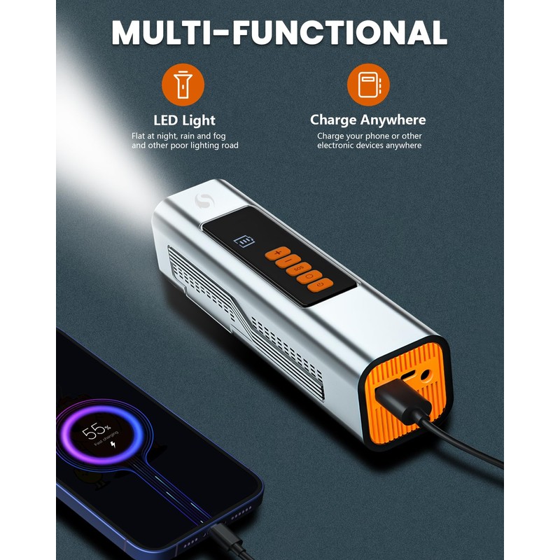 - Dualer Stromversorgungsmodus: DC 12V Stromversorgung und Akku-Stromversorgung, um das Aufpumpen zu erleichtern. Dieser Reifenfüller verfügt über einen eingebauten Akku, so dass Sie sich nicht mehr um die Verkabelung kümmern müssen. Wenn der akku luftpumpe Reifenfüller plötzlich den Strom verliert und nicht benutzt werden kann, können Sie ihn auch an den 12V DC Zigarettenanzünder Ihres Autos anschließen, um Ihre Reifen aufzupumpen.