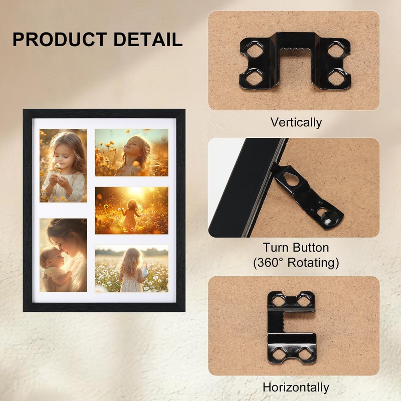 - Removable Mat: The 5 openings black collage frame features a removable white mat, with mat for 4x6 photos or without mat for 11x14 poster;