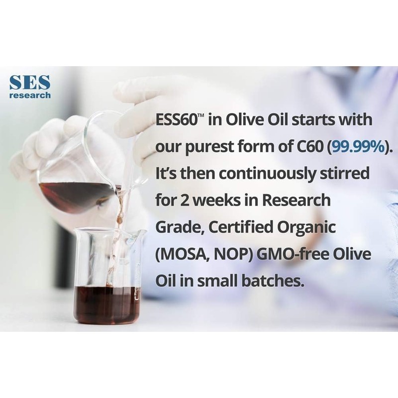 - THE ORIGINAL C60 MAXIMUM CONCENTRATE - At SES Research, we use only the finest directly sourced organic extra virgin olive oil, our Fine Grade is straight from Greece, in our C60 fullerene olive oil. We’re like the Single Malt Scotch Whisky of Extra Virgin Olive Oil. Everything at SES Research is made in the USA unlike many C60 competitors. C60 is processed for safer human consumption
