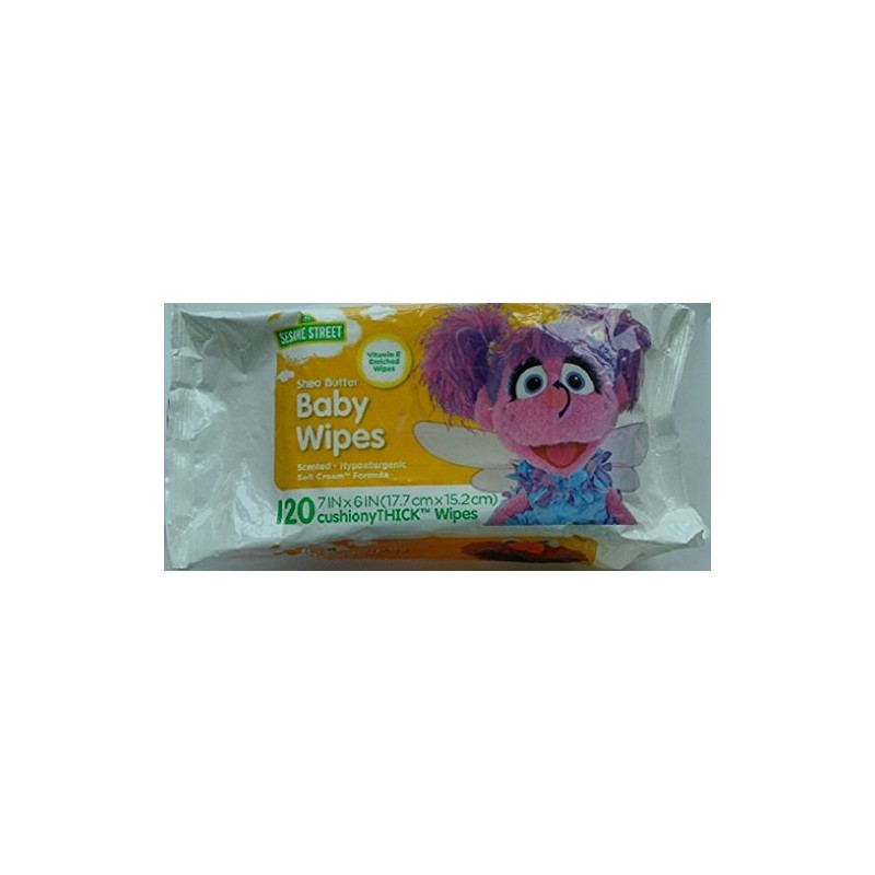 Sesame Street Shea Butter Baby Wipes, 120 Count, White, Large