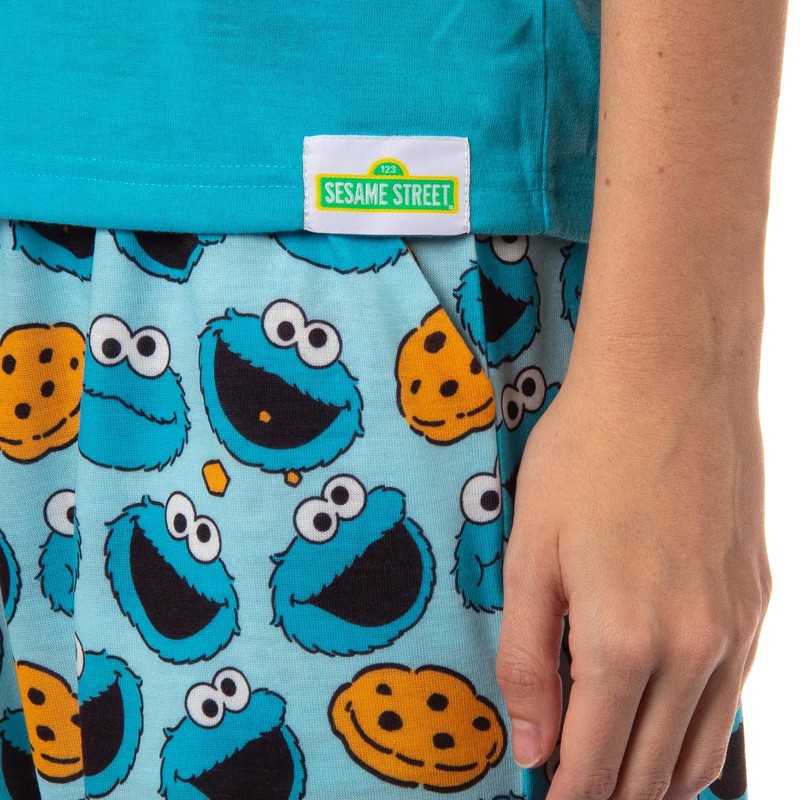 Sesame Street Women's Big Face Tossed Print Character Sleep Pajama Set (Cookie Monster, X-Large)