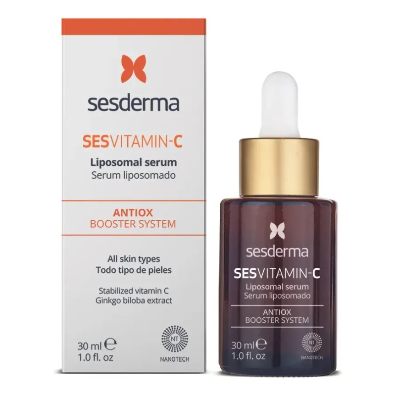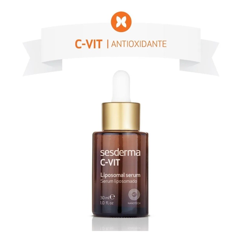 - vit Vitamina C, 30ml, Sesderma Serum con vitamina C de máxima actividad antioxidante, hidratante, antiarrugas e iluminador que devuelve a tu piel su vitalidad y luz natural. Antioxidante: protege del daño y envejecimiento prematuro de la piel por la acción de los radicales libres (exposición al sol, contaminación, tabaco, estrés). Antiarrugas: incrementa la síntesis de colágeno y elastina, consiguiendo una piel más firme y elástica. Unifica el tono: devuelve a la piel su vitalidad y luz natural. La vitamina C en tu piel se transforma en luz y gracias a la nanotecnología, conseguimos encapsular los activos en liposomas que maximizan su efectividad. ¿Está indicado para mí? Se trata de un tratamiento intensivo de vitamina C que combate el fotoenvejecimiento y aporta una inyección de luz a la piel. Su efecto es el de un potente antioxidante que disminuye las arrugas y aumenta la firmeza. Además, su exclusivo ANTIOX BOOSTER SYSTEM favorece la síntesis de colágeno y ayuda a obtener un tono uniforme de la piel, devolviéndole su luminosidad natural. La línea C