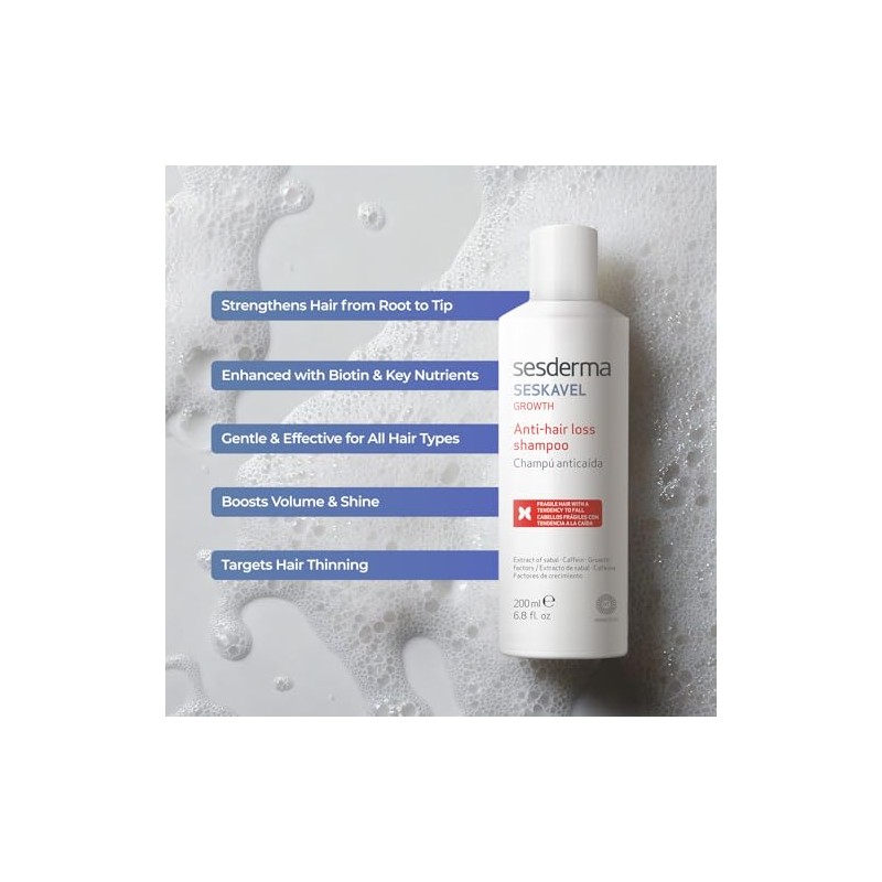 SESDERMA SESKAVEL Shampoo Anticada para Cabellos Frgiles y Dbiles Fortalecimiento del Capilar, Complejo multivitamnico 200 ml