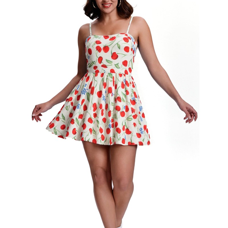 SeSe Code Summer Dresses for Women Spaghetti Strap Mini Sun Dress Casual Beach Sundress with Pockets Light Yellow Cherry M