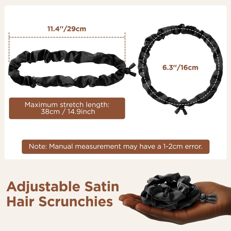 SESENSE 8PCS Adjustable Hair Ties, Afro Puff Satin Hair Tie Elastics Satin Non-Damage Adjust Ponytail Holders for Black Women Thick and Nature Style