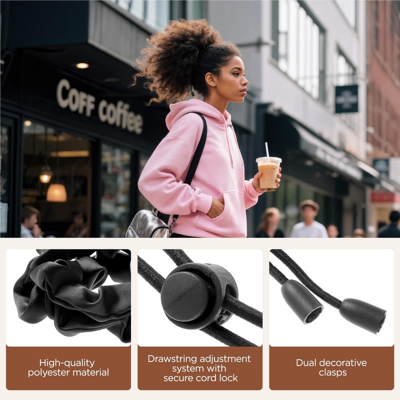 Easy to Use: Simply place the hair tie on your hair, press the elasticated button, adjust to your preferred length, and release to secure. To remove, press the button to loosen. No slipping or tangling guaranteed