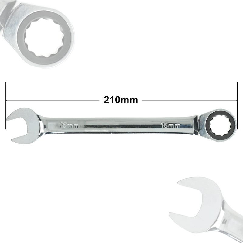 Seshin Buffalo 16mm Ratchet Spanner Steel Fixed Head Gear Wrench Open End & Ring (16mm)