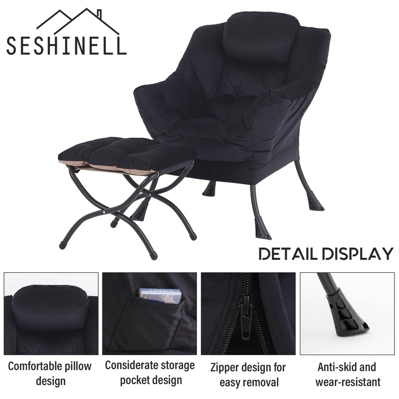 - LAZY CHAIR WITH OTTOMAN: The comfy lazy chair comes with a versatile folding footstool. You can also put the footstool next to the sofa and coffee table in the living room as a footstool to relax your feet, or even put it in the hallway or doorway and sit on a small stool to change your shoes.