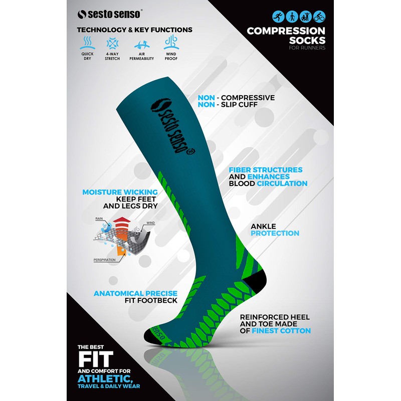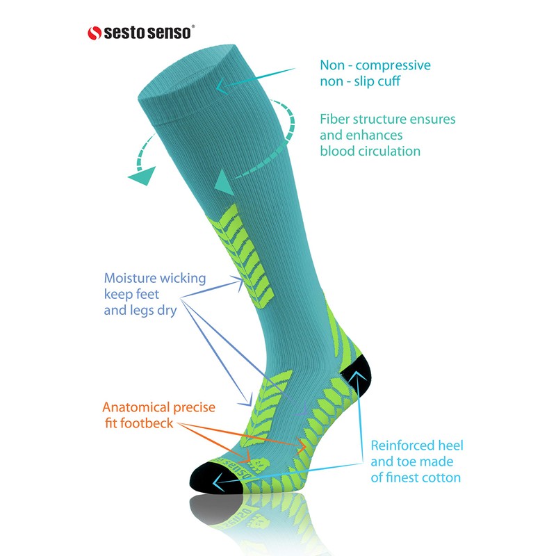sesto senso Alte Calze a Compressione Calzettoni Sportive Donna Uomo per Sport, Single Pack - Turquoise