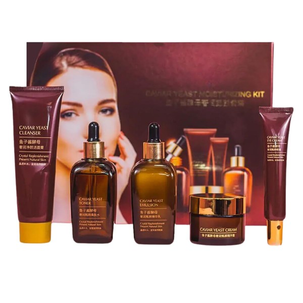 Set 5 Piezas Cuidado Facial Caviar Yeast Moisturizing Kit Rutina Facial Coreana Completa Piel Reseca Extracto Caviar Acido Hialuronico Anti Arrugas Lineas de Expresion