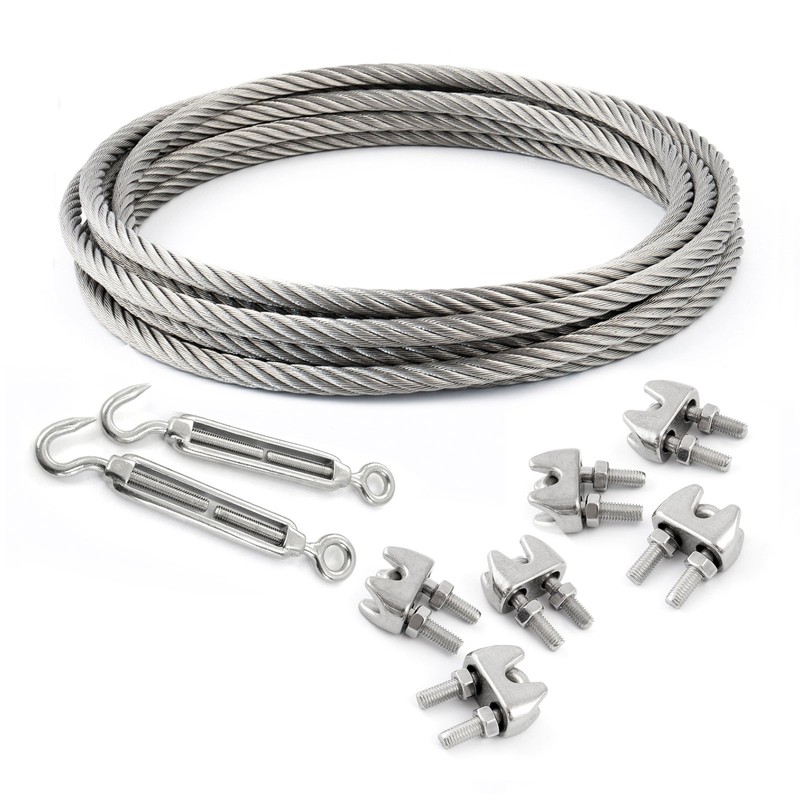 SET 5m wire rope stainless steel strand:7x19 6mm + 6 clips + 2 turnbuckles eye-hook M6 + many sizes avaliable - many sizes avaliable