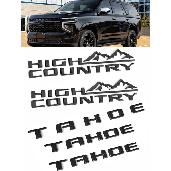 Set 5pack OEM Three Tahoe Plus two High Country Emblems 3D Letters Badge Compatible with Tahoe 2019-2025 84910061 Glossy Black