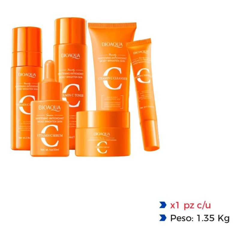 Set 6 Piezas De Cuidado Facial Bioaqua Vitamina C + Ácido Hialurónico Ilumina, Hidrata Y Unifica El Tono De La Piel