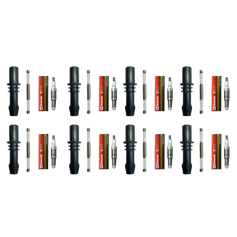Set (8) OEM Platinum Spark Plugs + 8 Ignition Coil Boots For Ford 04-10