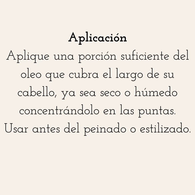 Este aceite es ideal para todo tipo de cabello, proporcionando una fragancia sutil que dejará tu pelo con un aroma agradable. Su presentación en botella facilita la aplicación, permitiéndote dosificar la cantidad necesaria para obtener resultados óptimos. Con el uso regular, notarás cómo tu cabello se vuelve más manejable y luminoso.