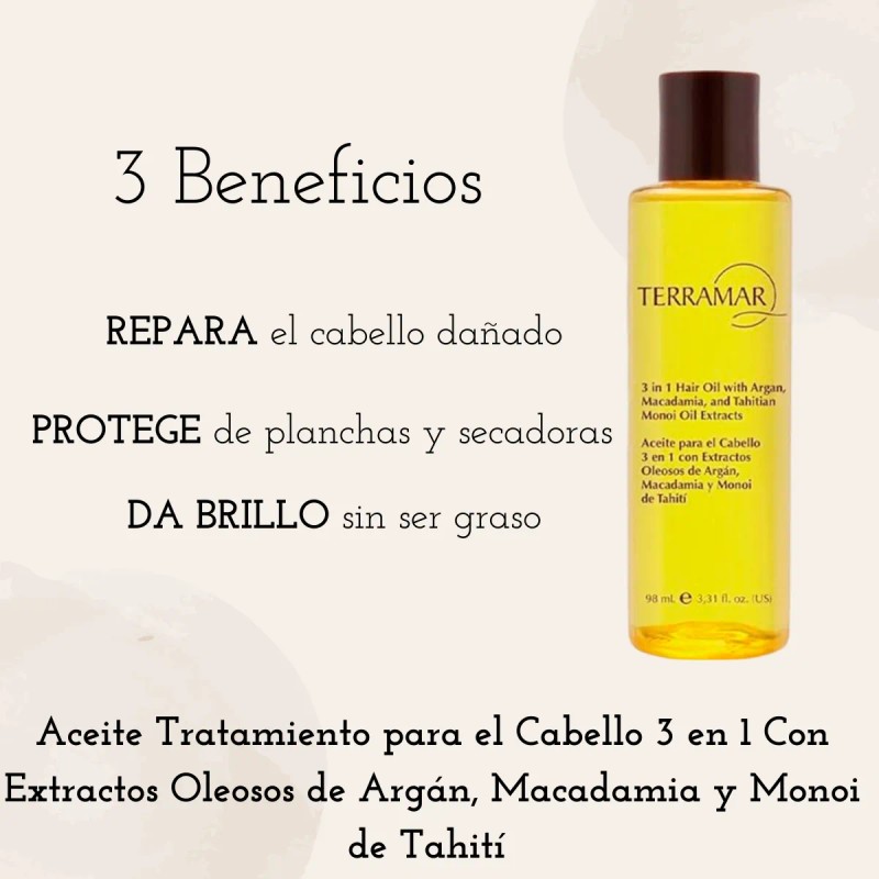 Terramar se compromete con la calidad y la seguridad de sus productos, garantizando que cada gota de este aceite ha sido testeada dermatológicamente. Incorpora este tratamiento en tu rutina de cuidado capilar y transforma la apariencia de tu cabello, dándole el amor que merece.