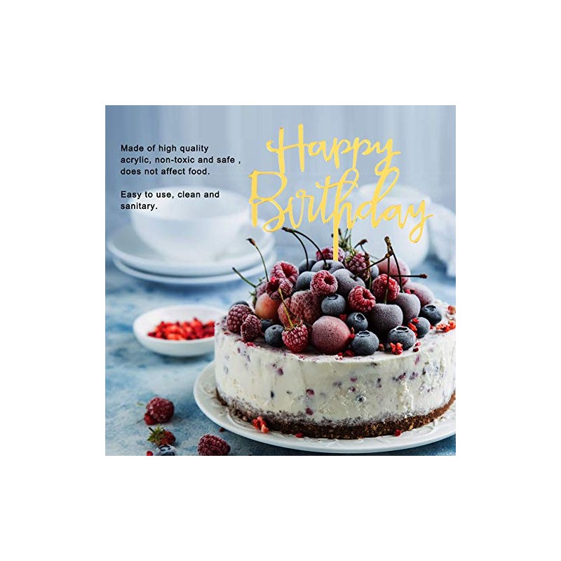 Set de 10 tortas doradas de cumpleaños, tortas de acrílico para cumpleaños feliz Cupcake Toppers para decoraciones de cumpleaños
