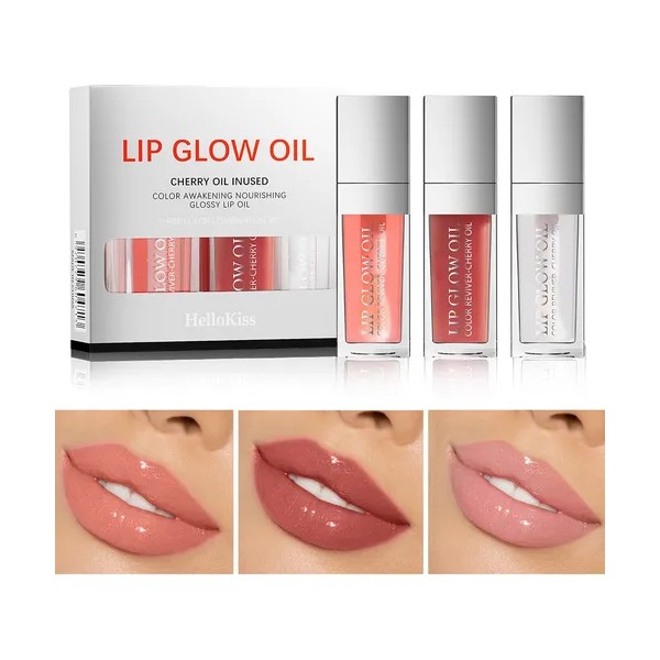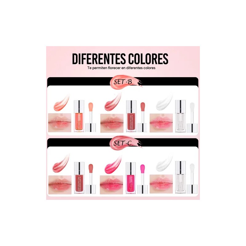 Set De 3 Aceites Para Labios Lip Glow Oil Gloss Hidratante