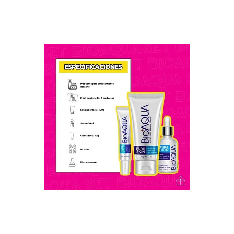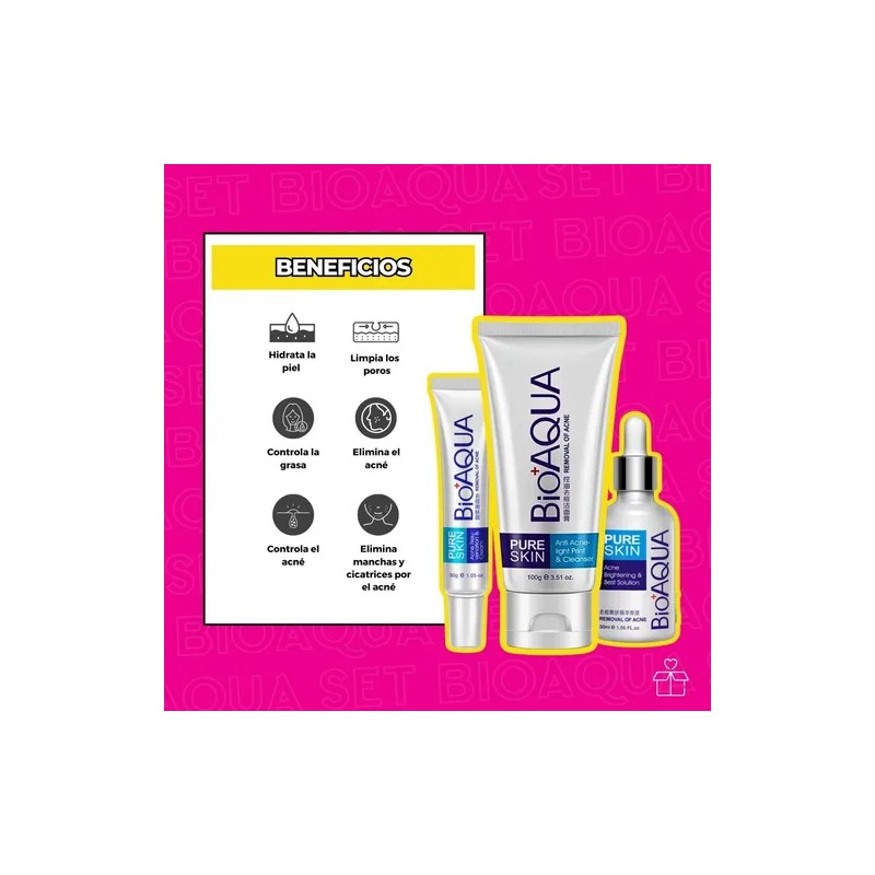 Trio de Pure Skin Bioaqua para tratamiento del acné.