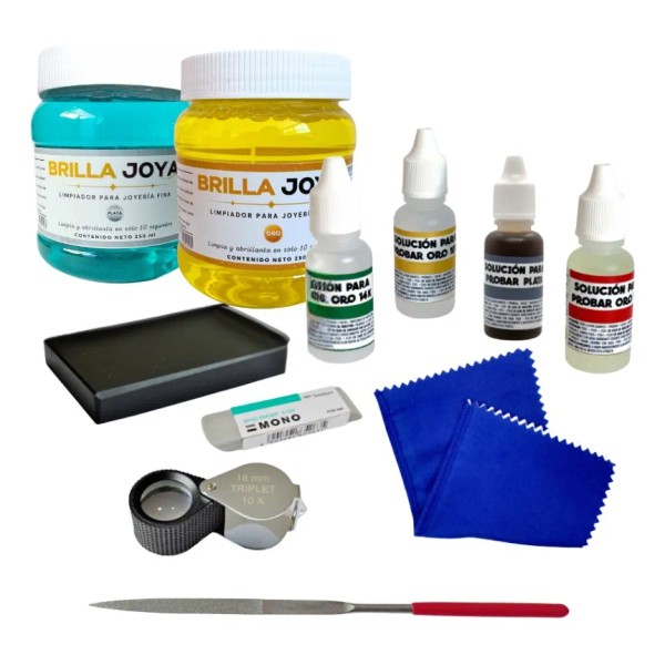 ¿Compras, vendes o trabajas con metales? Este set es tu mejor aliado para verificar, limpiar y cuidar tus joyas.