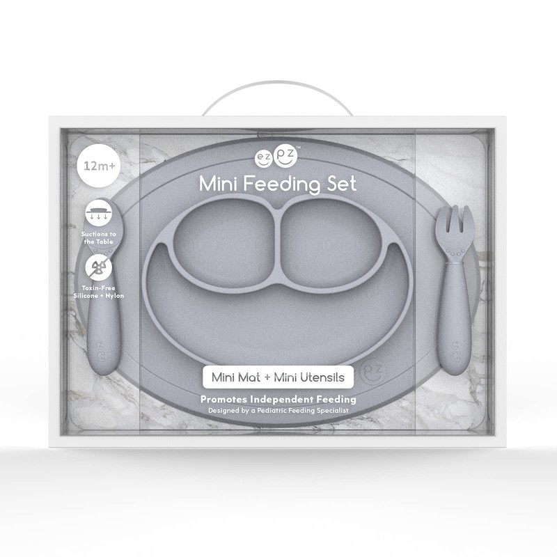 Set De Alimentos Plato Autoadherible para Bebé Set Alimentos Mini Ezpz 12 meses Plato Utensilios Adherible para Bebé (PLATA)