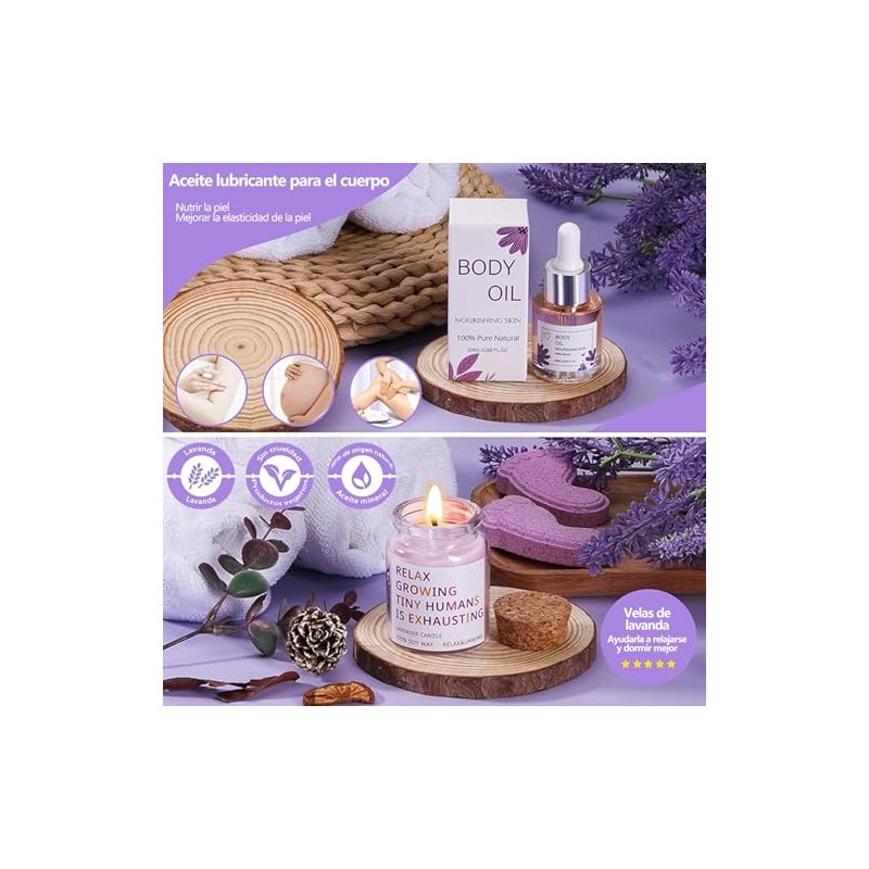 Set de Regalo de Lavanda para Spa y Relajacin, Regalo para Mujer, Mam, Hermana o Mejor Amiga, Ideal para Cumpleaos, Navidad y Aniversario (C, Lavanda)
