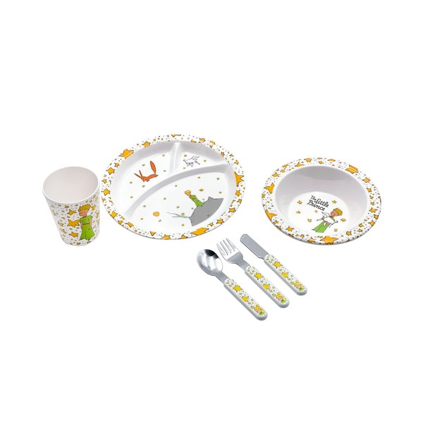 Set de Vajilla De Melamina Con Cubiertos, 6 piezas, "El Principito" (White)