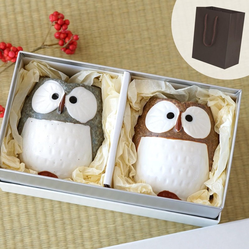 Set Item: Lucky Owl Teacup Pair Set, Name, Gray, Brown