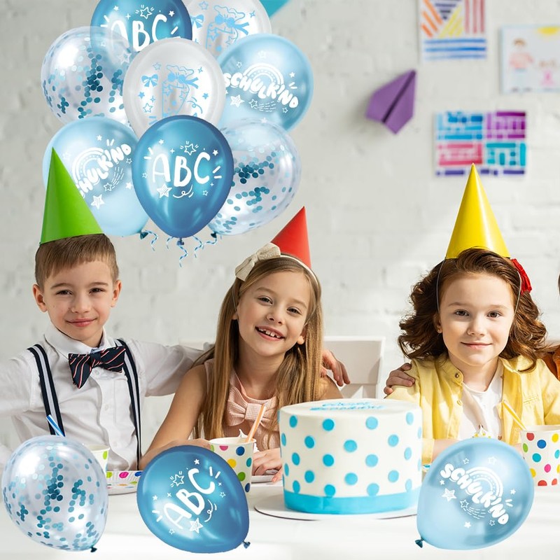Set mit 20 Ballons in Regenbogen-Blau-Tönen Jungen & Mädchen – Deko für Schuleinführung, Schulstart-Feiern, Kinderfeste, Geburtstage & Boho-Partys (Blau)