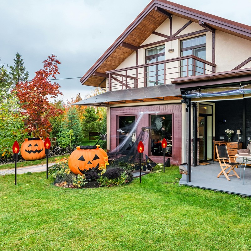Set of 10 Orange C9 Bulb Halloween Pathway Markers - 8.75' Black Wire