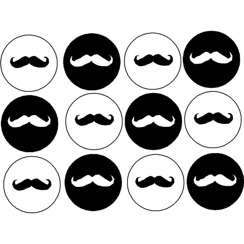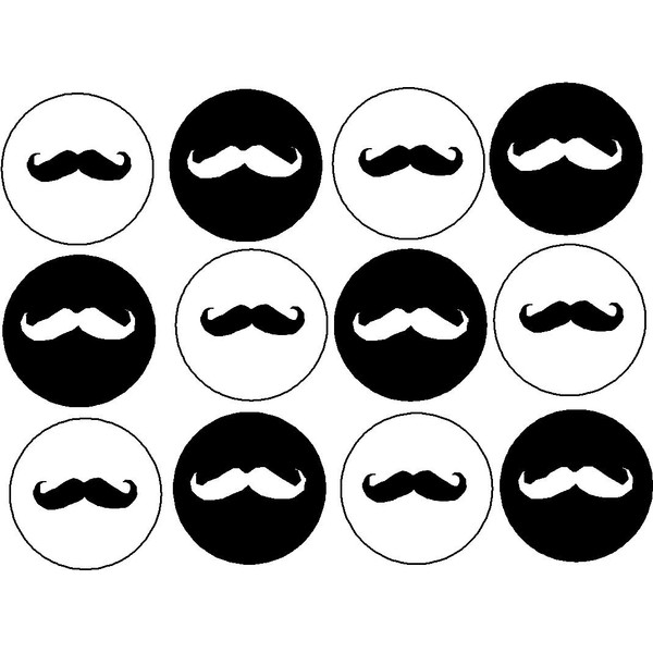 Set of 12 Black & White Moustaches 1.25" Pinback Buttons Pins Moustache