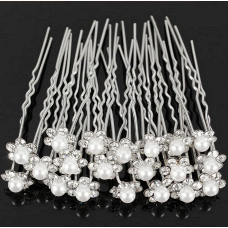 Set of 12 Crystal Flower Design Hair Pin Hair Accessories Wedding Communion Tiara
