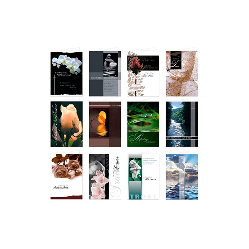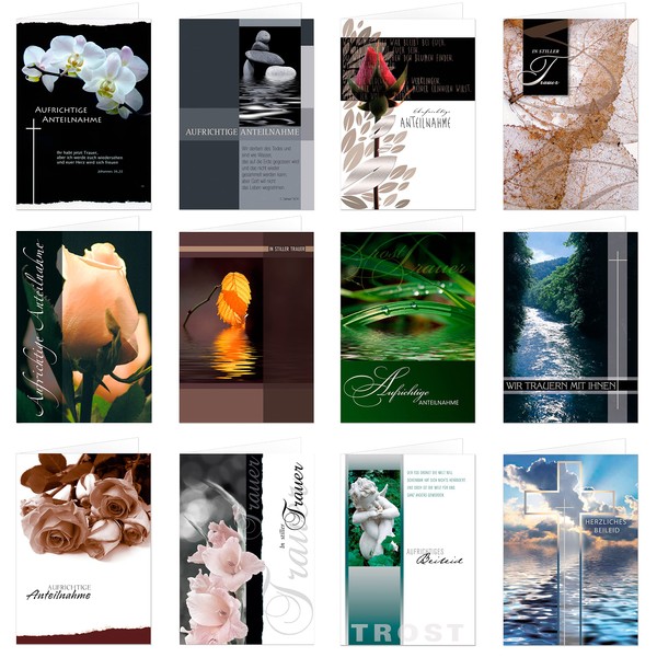 Set of 12 Sympathy Cards Condolence Cards with Envelope, Folding Cards 17 x 12 cm (Not the Smaller A6 Format)