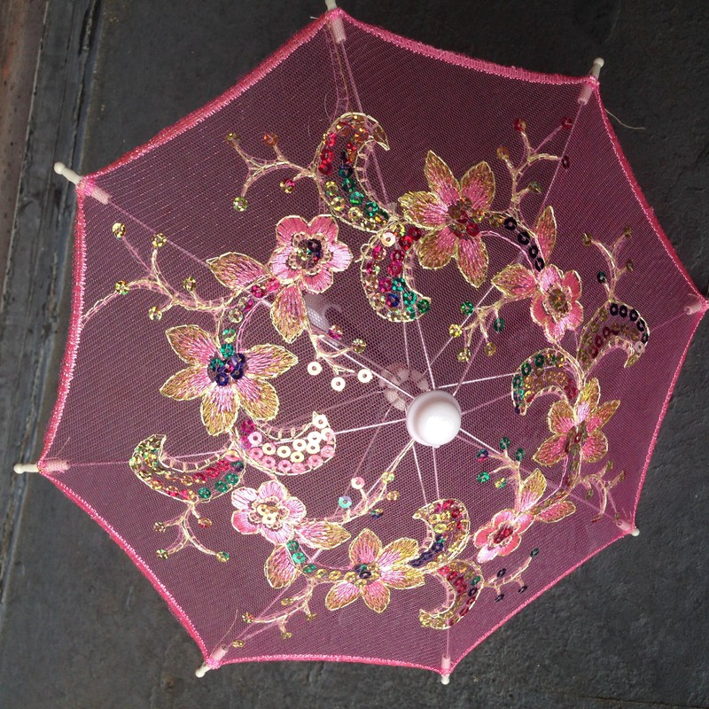 Set of 12 Tiny/small Lace Embroidered Parasol Umbrella (8 Inches Only) for We...