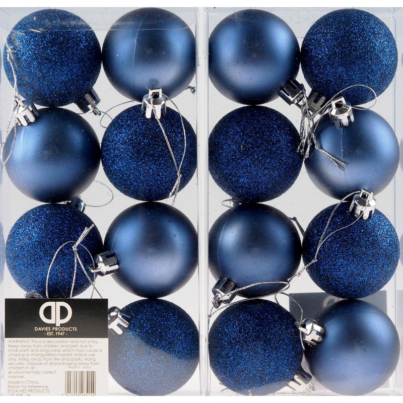 Set Of 16 Midnight Blue Christmas Tree Baubles Decorations - Glitter And Matt Texture
