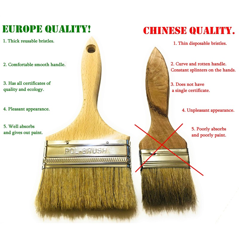 - MADE IN EUROPE: The POL BRUSH brand paint brushes are manufactured in Europe, complying with all the requirements of the high quality standard, have all the certificates of quality, compliance and environmental friendliness. There are 3 levels of control in production: quality control of materials, quality control of assembly and quality control of packaging.