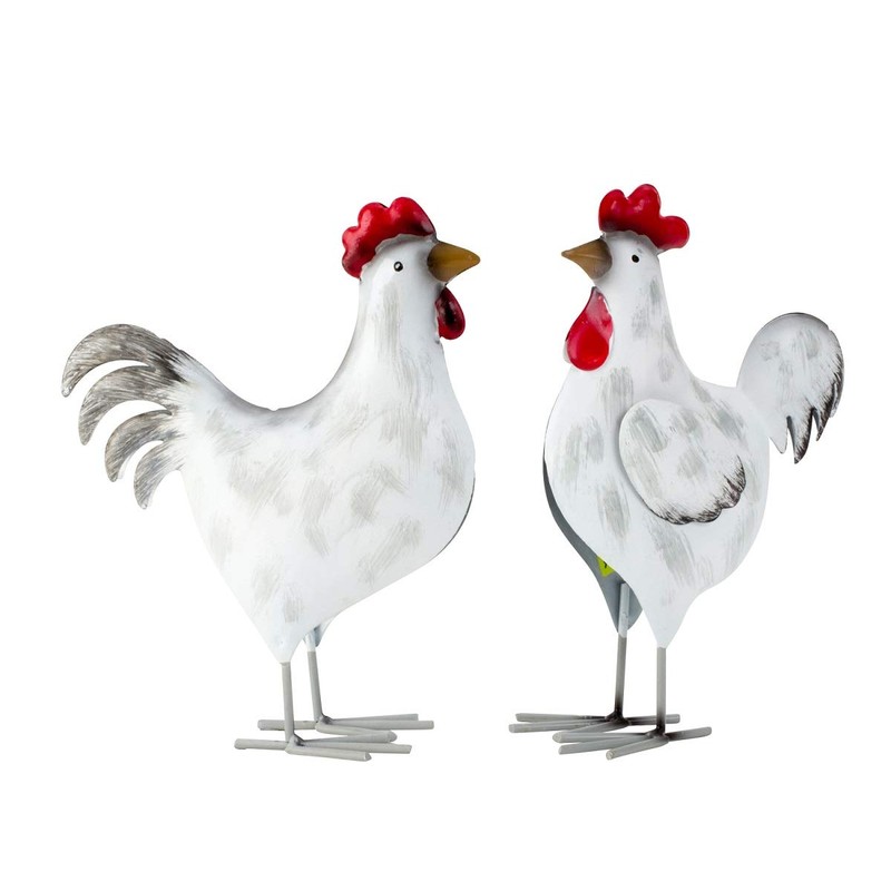 - Stylish metal figures rooster and hen, decorative figures for home and garden
