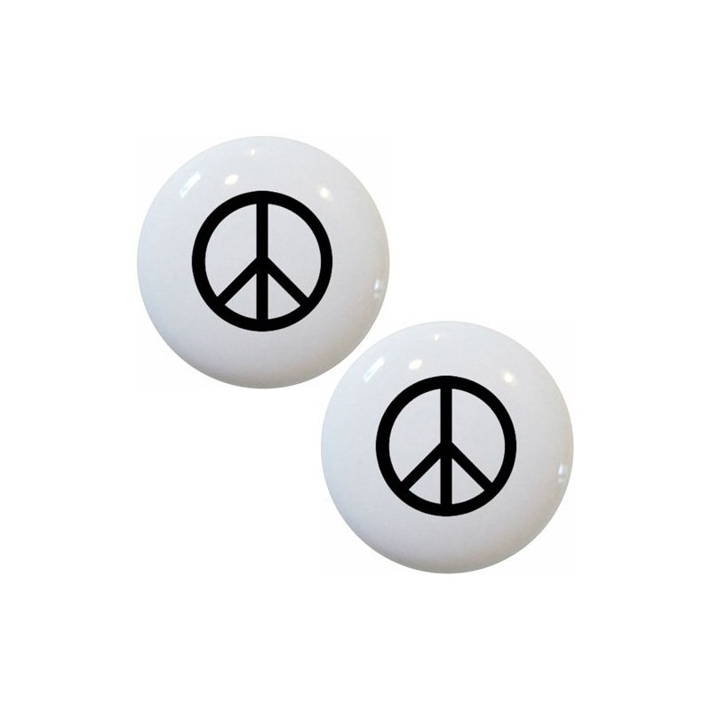 Set of 2 Black Peace Sign Ceramic Cabinet Drawer Pull Knobs