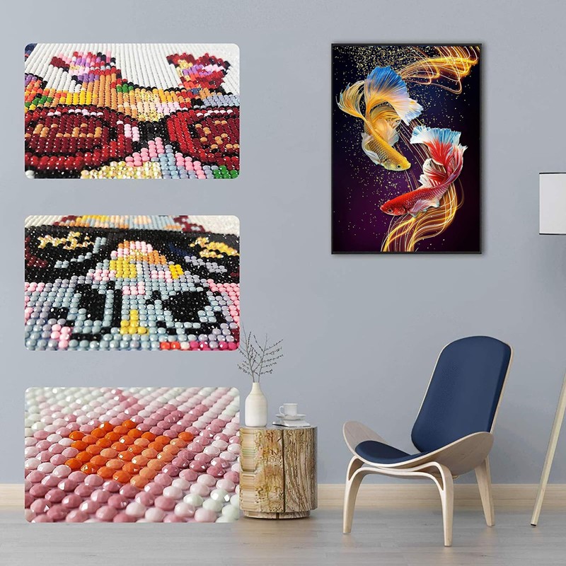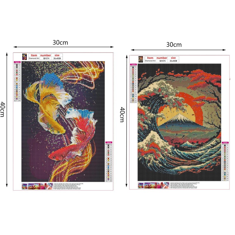 Set of 2 Diamond Art Kit Wikrtoria 5D Full Beaded Diamond Art Painting Kit Carp Streamer Design Handmade Painting Craft Kit Mosaic Art Handmade Artwork Decoration 3D Screen Wall Hanging Tool 30x40cm