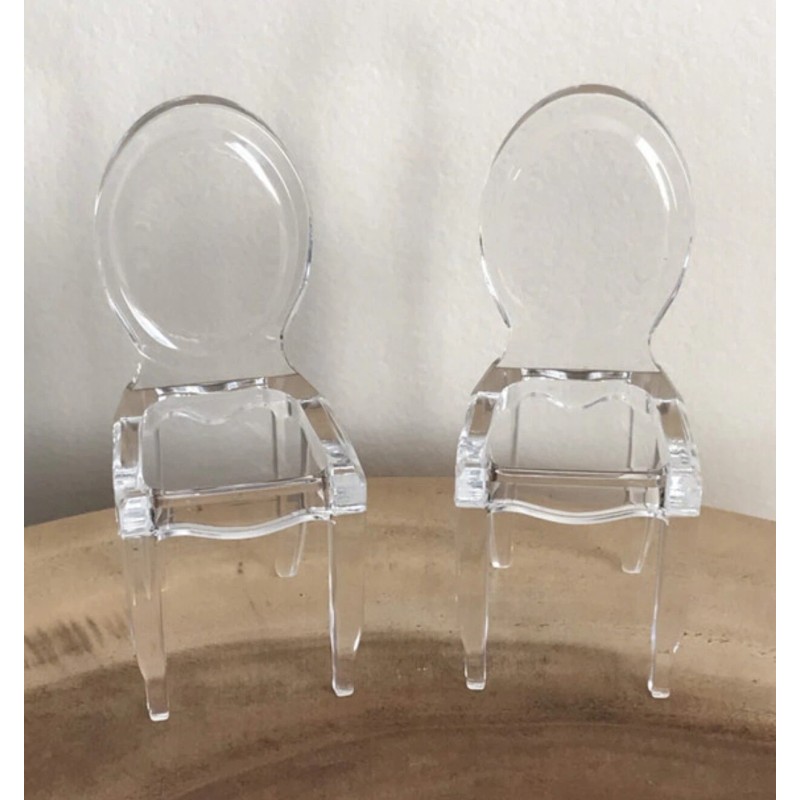 Sold as a set only, this listing is for two, 1:12 scale acrylic ghost chairs.