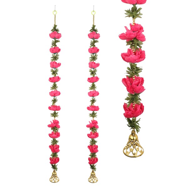 Set of 2 Door Hanging with Artificial Rose Flower Made up of String Hanging and Beads with Bell for Home Wall Temple Indian Traditional Festival Decoration Home Decor(Size:-36"X2")(Pink)