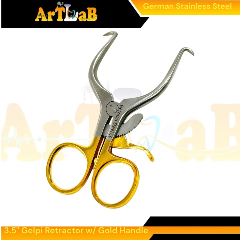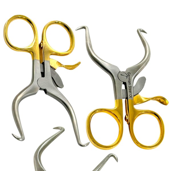 Set of 2 Each Gelpi Retractors with Sharp Tips, Gold Handle Self-Retaining Spreader Tool, Passivated German Stainless Steel Premium