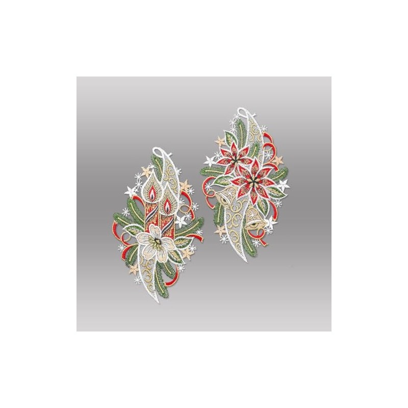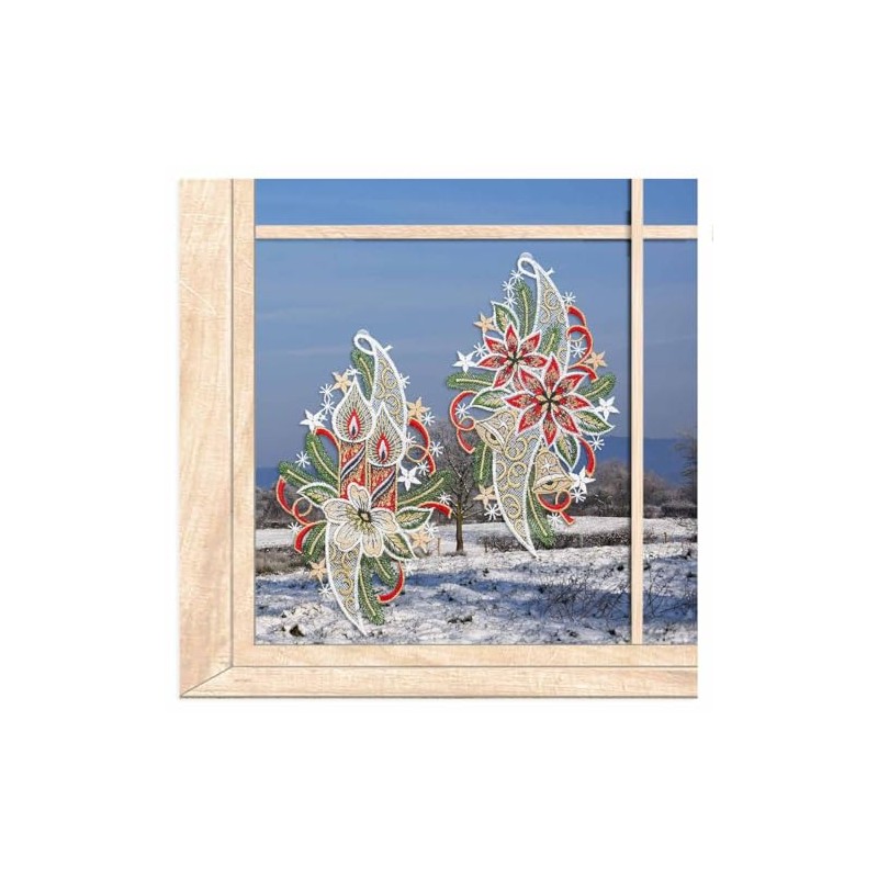 Set of 2 Embroidered Winter Window Decorations Candles and Poinsettias High-Quality Window Decoration Made of Real Plauen Lace 15 x 26 cm