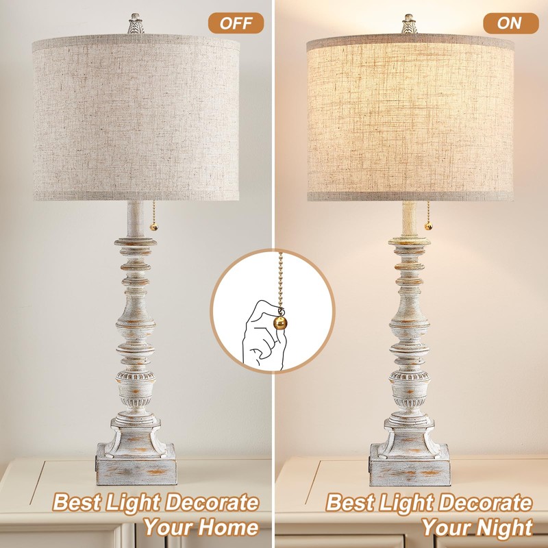 - Elegant Appearance: These farmhouse lamps set of 2 feature a sturdy resin base with a distressed finish that captures the essence of farmhouse charm. The linen fabric shades add a touch of natural elegance, making these lamps a perfect fit for various decor styles. Whether you're looking to brighten up your living room, add a cozy touch to your bedroom, or create a warm ambiance in your office, this versatile farmhouse table lamps set of 2 are the perfect choice.