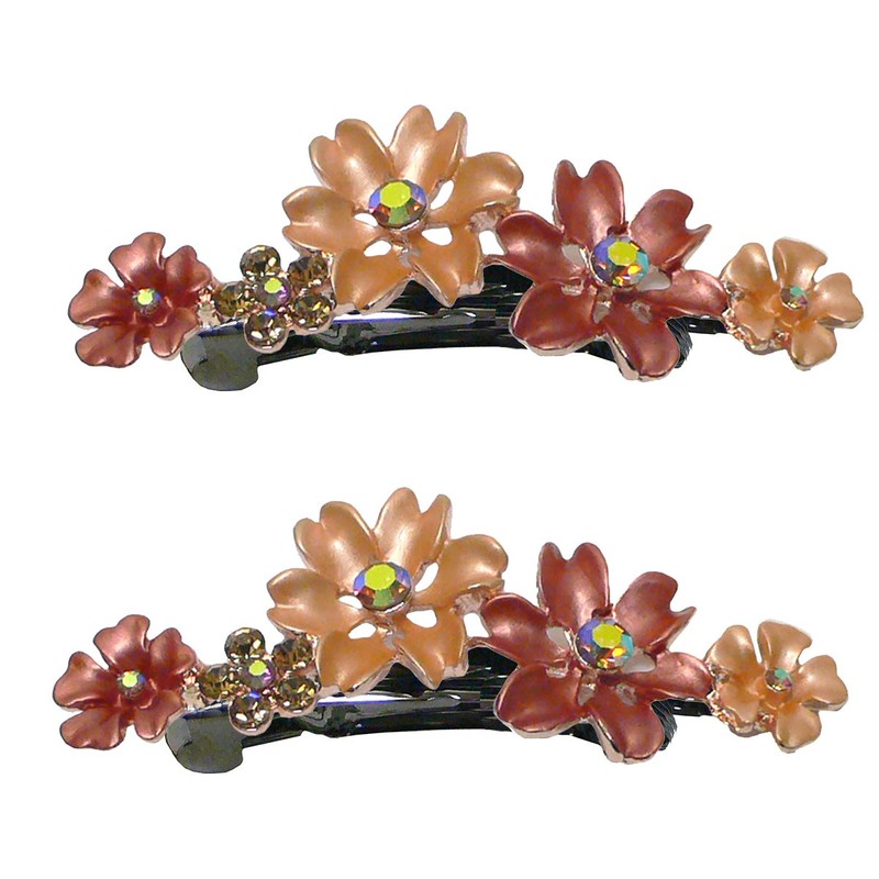 Set of 2 Flower Barrettes Med/Small Hair Clip Both in Shades of Peach Sparkly Rhinestones YY86400-12-2peach