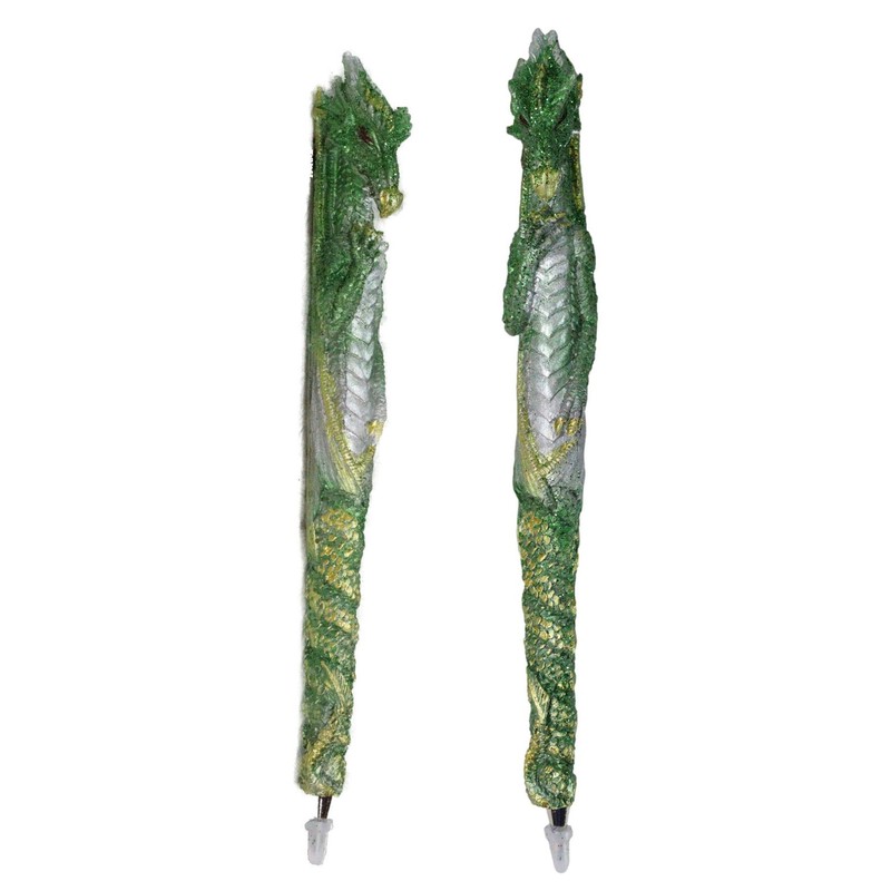 • Embark on a journey through realms of imagination with our Glittering Metallic Green Medieval Fantasy Dragon Sculptural Ball Point Pens! Crafted with intricate detail and shimmering metallic green finishes, these pens capture the mystique and allure of medieval fantasy dragons. Each pen boasts a sculptural dragon design, bringing a touch of magic to your writing experience. Whether you're penning epic tales or jotting down notes, these pens are sure to ignite your imagination.