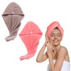 Set of 2 Hair Turban Head Towel, Microfibre with Button, Super Absorbent, Quick Drying, Light Pink + Light Coffee