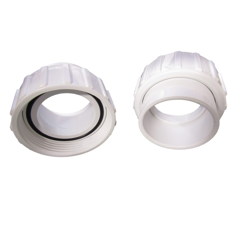 This Kit is a Set of (2) 2" Slip X 2" Pump Union with Gasket or O-ring that matches Union. The Union recieves a 2" pipe or fitting on one side and then Screws to a 2" Wetend(Pump) Threaded Part on the other side. It will Glue to a 2" Pipe or Slice and screw to a 2" Wetend fitting. Don't be confused we also offer a Pump union that is 1 1/2" Slip X 1 1/2" Pump Wetend or a 2" Slip X 2 1/2" pump Union. If your plumbing is 2" and your Pump Wetend Thread is 2" this part is correct. Also if your Pump is 2" and Your Plumbing is 1 1/2" You can use a 1 1/2" To 2" Bushing to make them fit together. This version is the most popular version. 1 1/2" x 1 1/2" is 2nd most popular and 2" X 2 1/2" is 3rd most popular. The pictures also show a wetend so you can see what this part screws to. The Wet End is NOT Included in the sale. This part is used in hot tubs to plumb to a Pump Wetened Fitting.