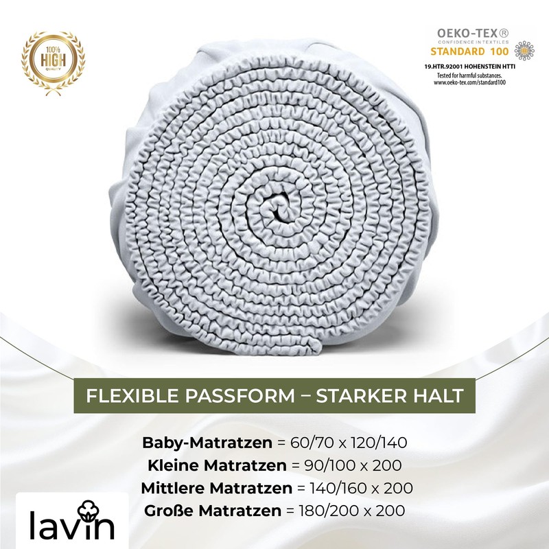 Set of 2 Lavin Fitted Sheets 100% Cotton Jersey Fitted Sheet (Pearl White, 140/160 x 200 + 30 cm)