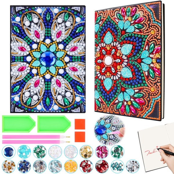 Set of 2 Mandala A5 Notebook Diamond Painting, Craft Set Gift Girls 6 7 8 9 10 Years, Blank Diamond Painting, 5D DIY Diamond Pasted Painting Notebook Kits, Notebook Kit, Notebook School Supplies Craft